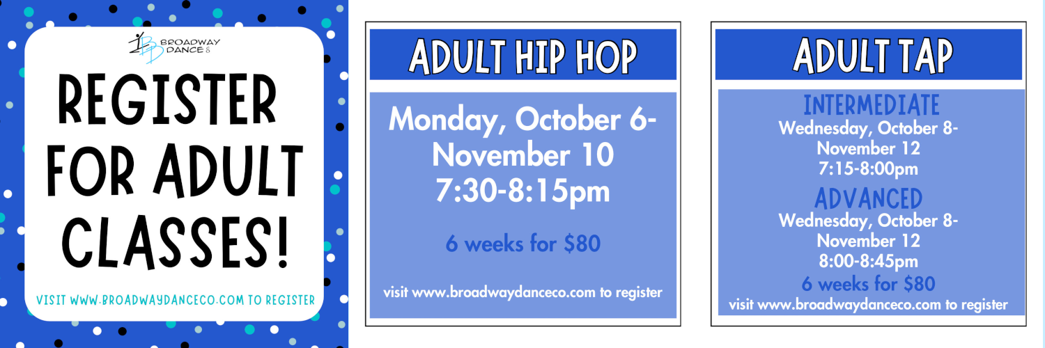 Featuring a variety of recreational dance classes for boys and girls ages 2 to adult, Broadway Dance Co offers every student the opportunity to enjoy a well-rounded performing arts education.